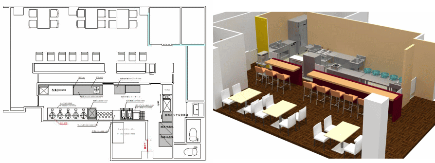 厨房のプロが対応しますのでレイアウト図面を最短1日で素早く対応いたします。