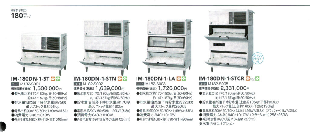 製氷機と言えばホシザキ、国内メーカーで高性能、機種も豊富で壊れにくい。修理も安心です。