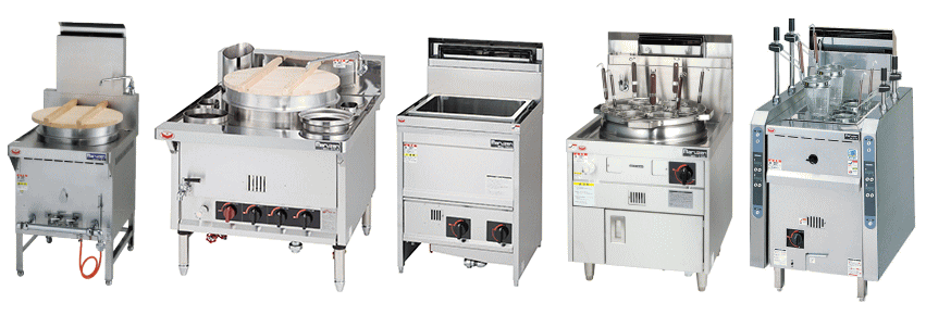 そば釜、うどん釜、ラーメン釜、スパゲッティー釜、冷凍麺釜…、各種、電気式・ガス式も承ります。